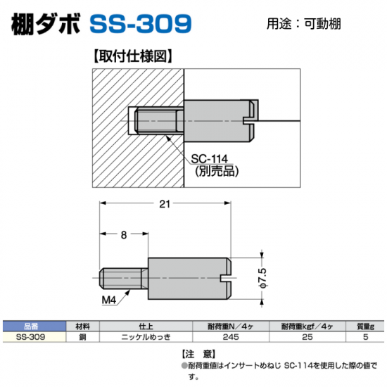TOP >棚ダボ >SSシリーズ(ネジ込み)