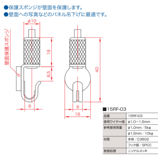 ■参考使用荷重:Φ1.0mm/5kg・Φ1.5mm/10kg