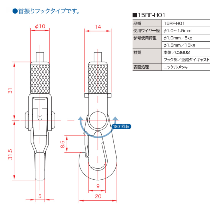 ■材質:本体/C3602・フック部/亜鉛ダイキャスト