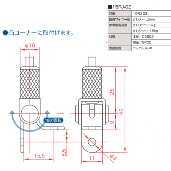 ■参考使用荷重:Φ1.0mm/5kg・Φ1.5mm/15kg