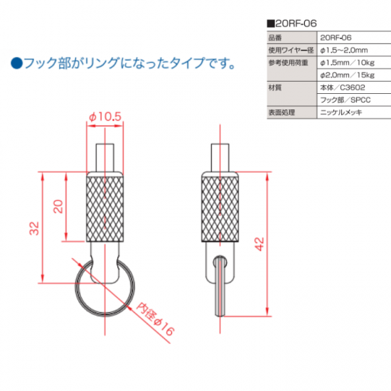 ■参考使用荷重:Φ1.5mm/10kg・Φ2.0mm/15kg