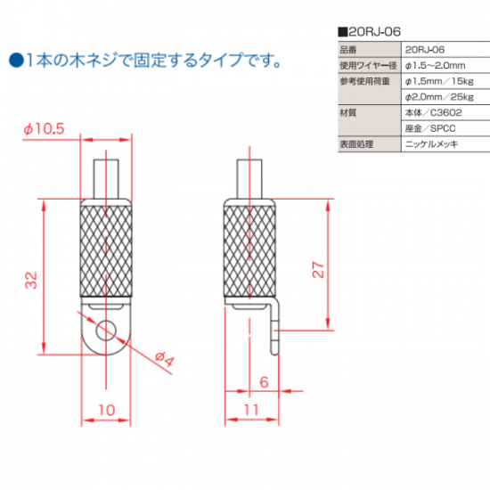■参考使用荷重:Φ1.5mm/15kg・Φ2.0mm/25kg