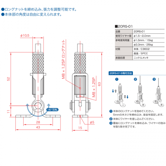 ■参考使用荷重:Φ1.5mm/15kg・Φ2.0mm/25kg