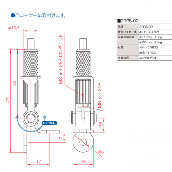 ■参考使用荷重:Φ1.5mm/15kg・Φ2.0mm/25kg