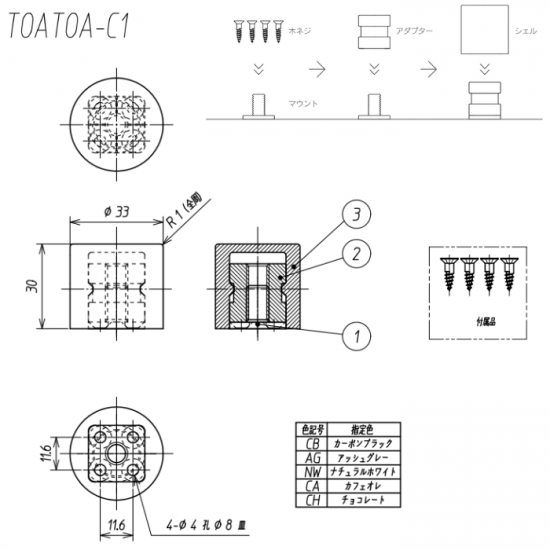 室内木床用戸あたりストッパー/TOATOA/E2/カーボンブラック
